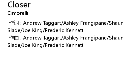 | [00:00.000] | zuò cí : Andrew Taggart Ashley Frangipane Shaun Frank Isaac Slade Joe King Frederic Kennett |