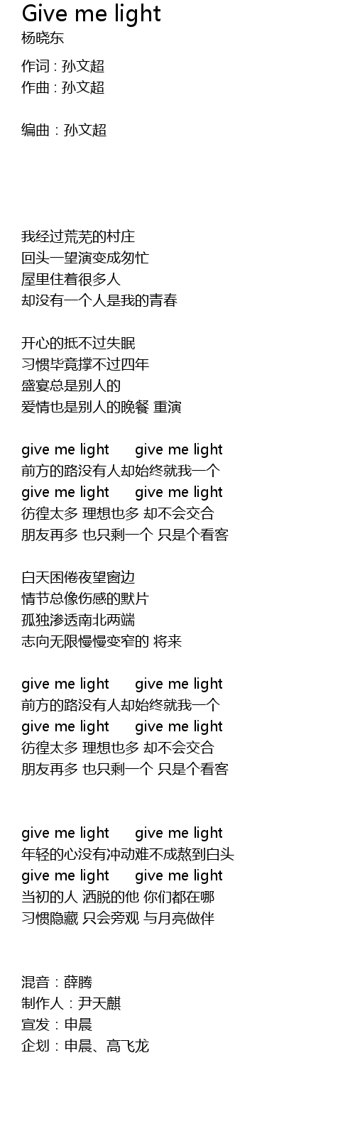 | give me light give me light | |