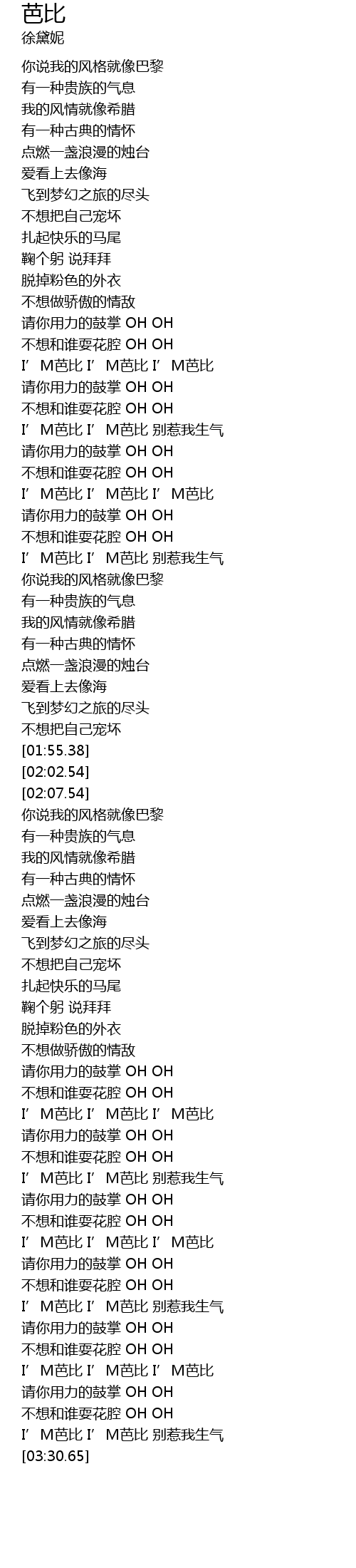| [02:53.28] | I’M芭比 I’M芭比 别惹我生气 |