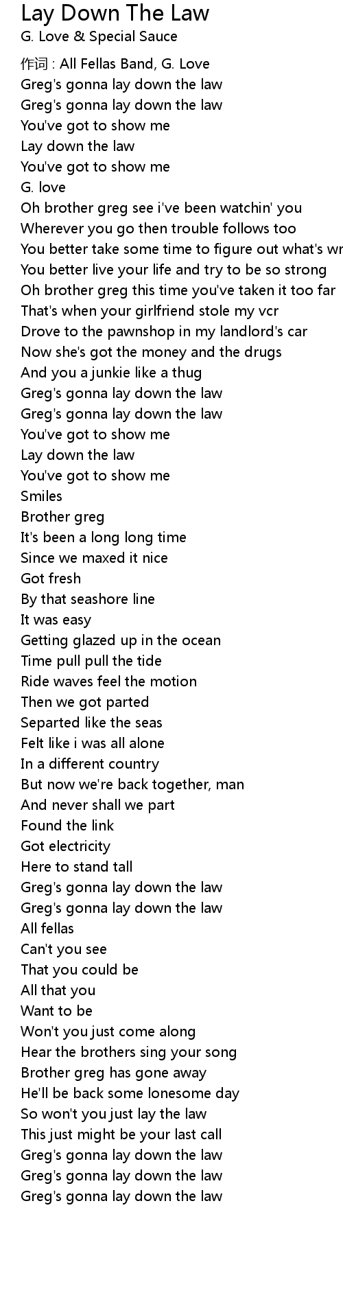| So won't you just lay the law | |