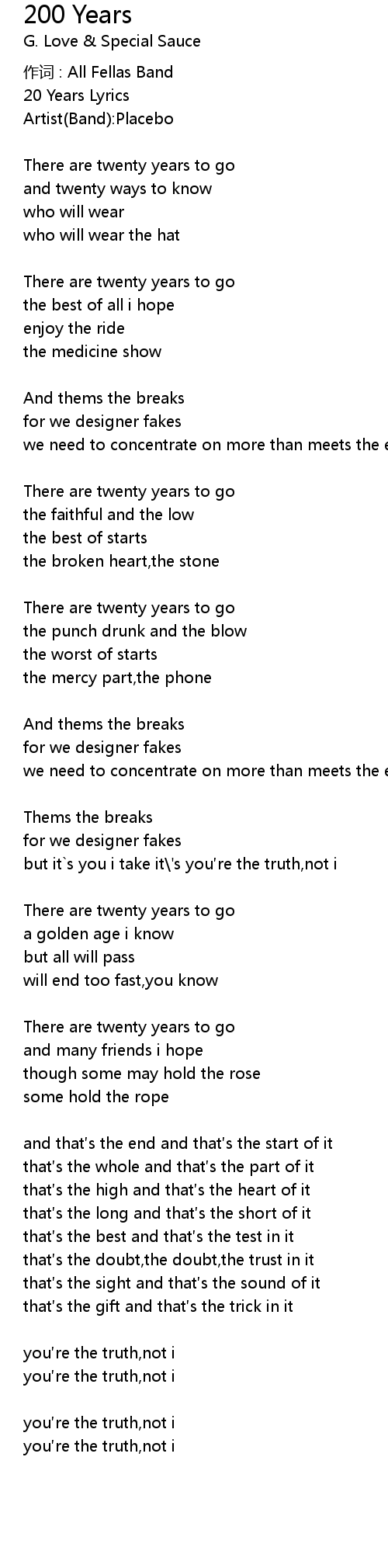 | 20 Years Lyrics | |