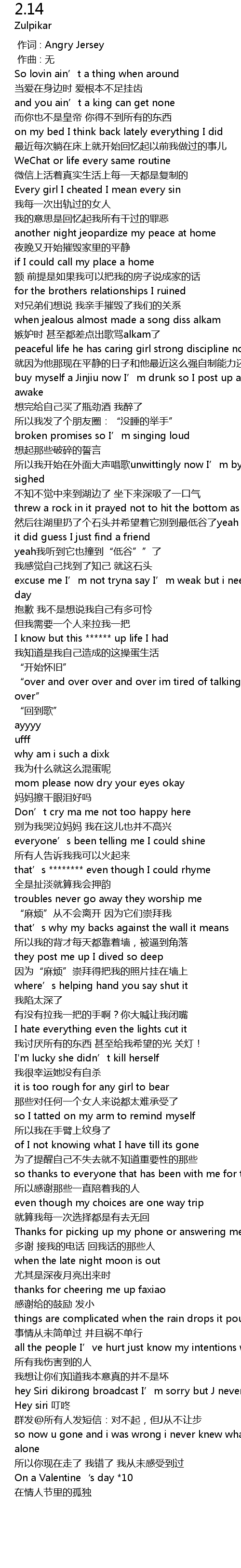 | [00:00.000] | 作词 : Angry Jersey |