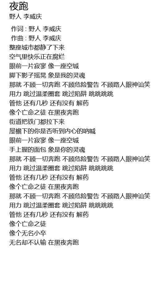| [00:01.000] | 作曲 : 野人 李威庆 |