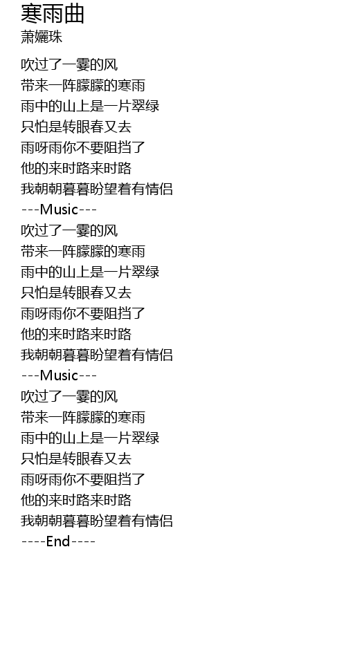 | [02:44.43] | 带来一阵朦朦的寒雨 |