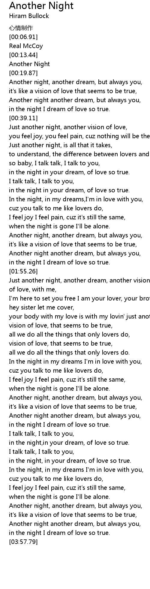 | [03:22.74] | in the night, in your dream, of love so true. |