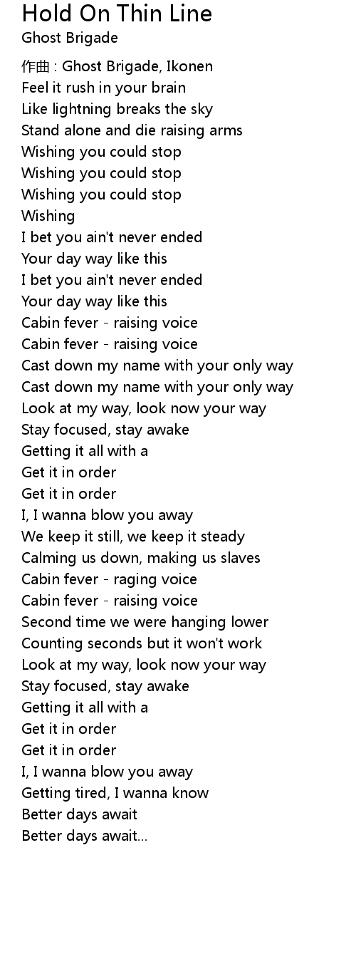 | Song | Hold On Thin Line |