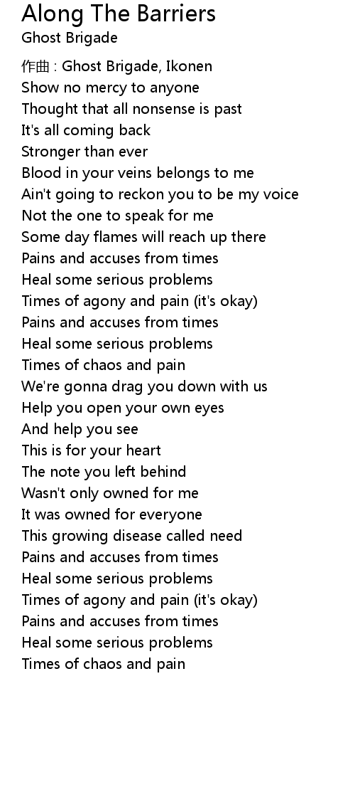 | Song | Along The Barriers |