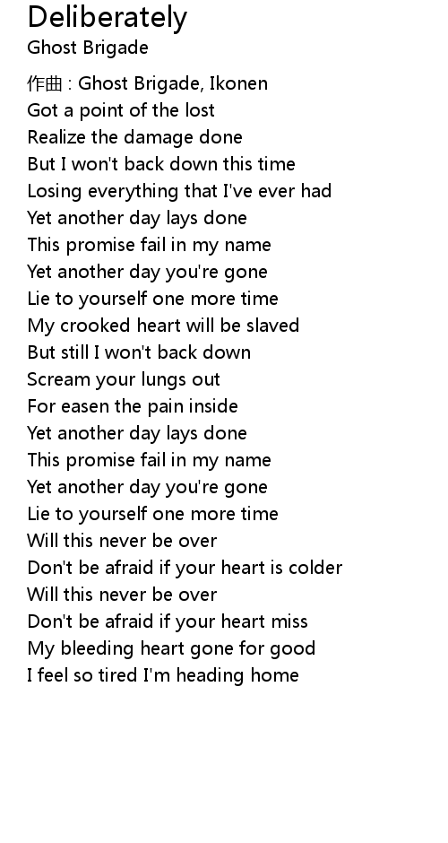 | Song | Deliberately |
