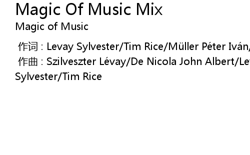 | [00:00.000] | 作词 : Levay Sylvester/Tim Rice/Müller Péter Iván/Szabo Agnes |