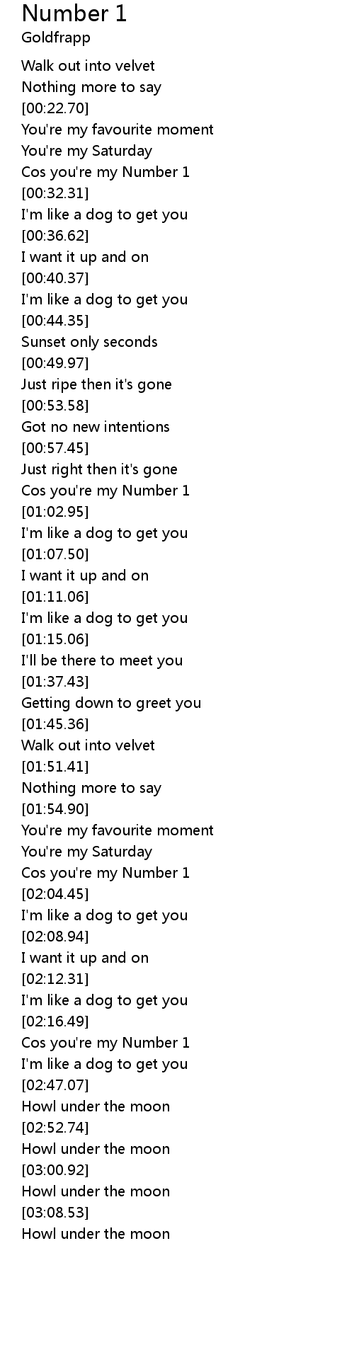 Cos you're my Number 1 |