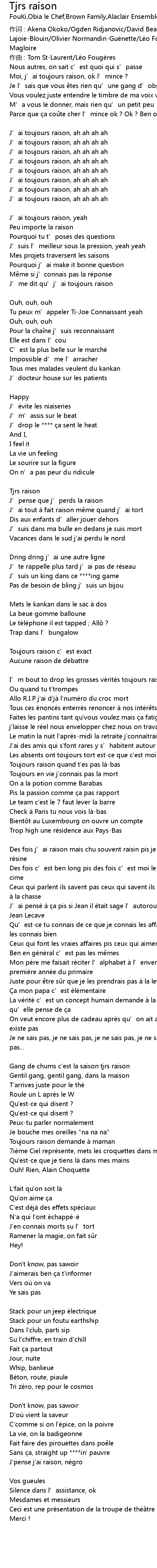 | J’ai toujours raison, yeah | |