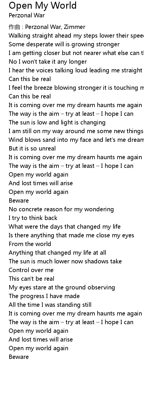 | Open my world again | |