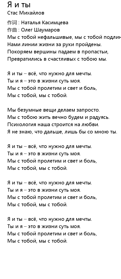 Ты и я – это в жизни суть моя. |