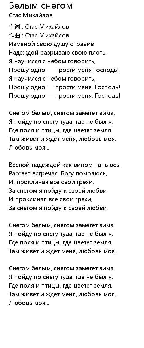 作词 : Стас Михайлов |