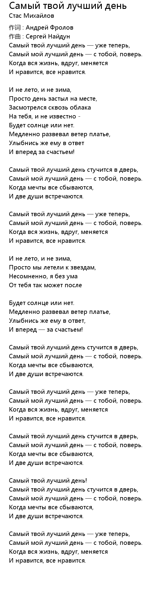 Самый мой лучший день — с тобой, поверь. |