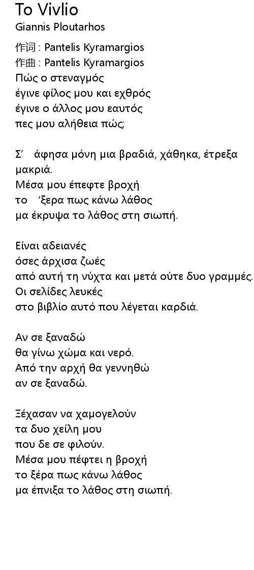 作词 : Pantelis Kyramargios |