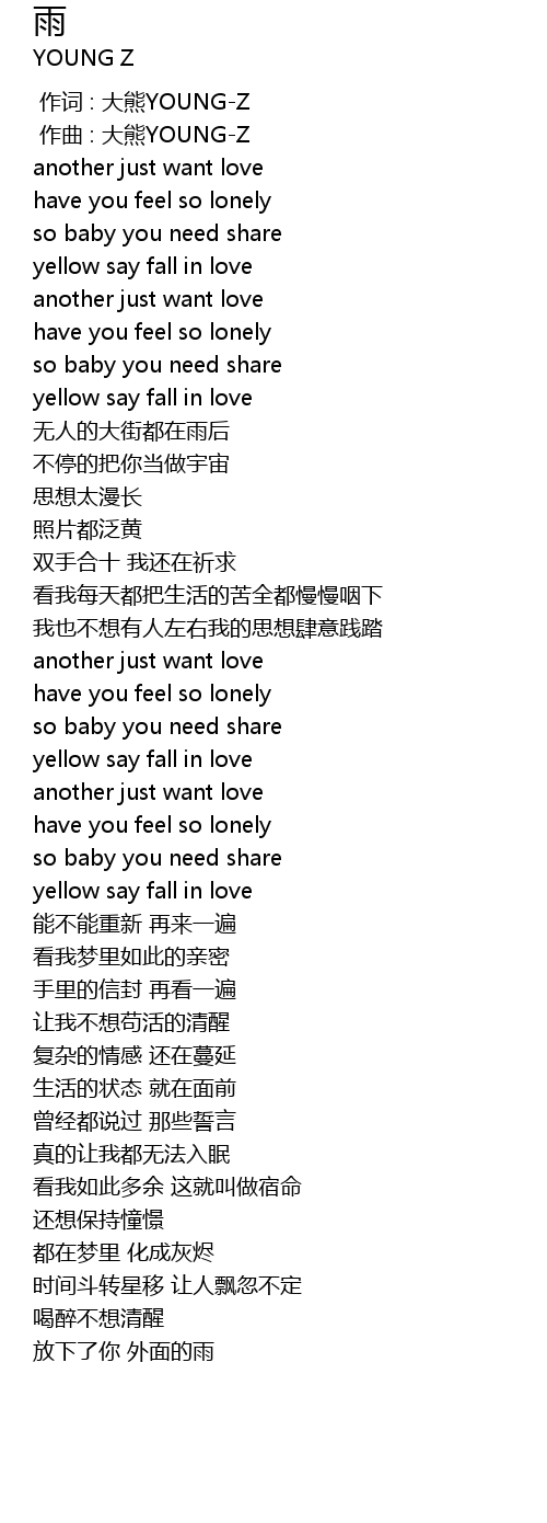 | [00:00.000] | 作词 : 大熊YOUNG-Z |