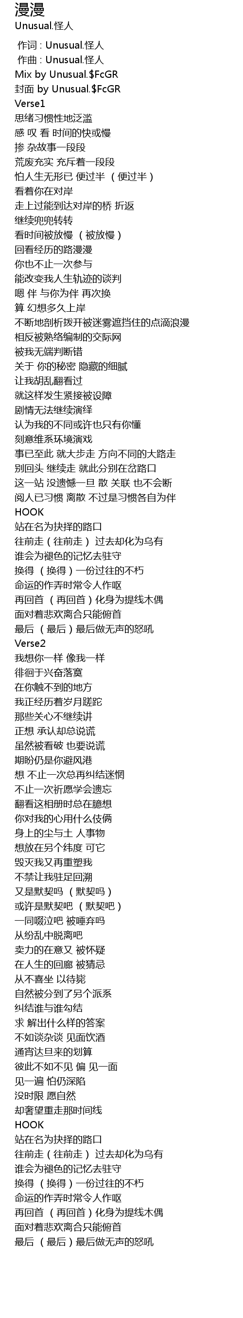 | [00:00.000] | 作词 : Unusual.怪人 |