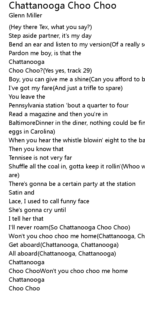 Won't you choo choo me home(Chattanooga, Chattanooga) |