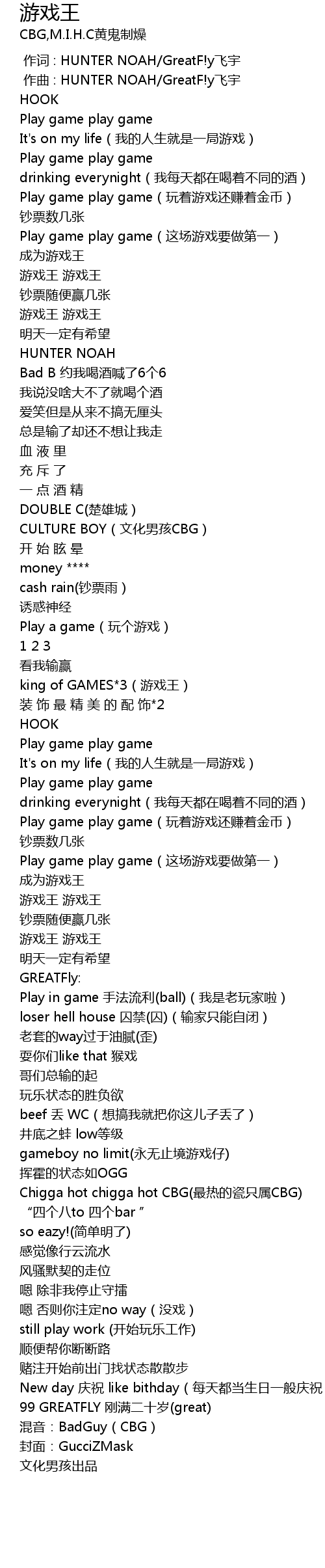 | [01:33.447] | Play game play game zhe chang you xi yao zuo di yi |