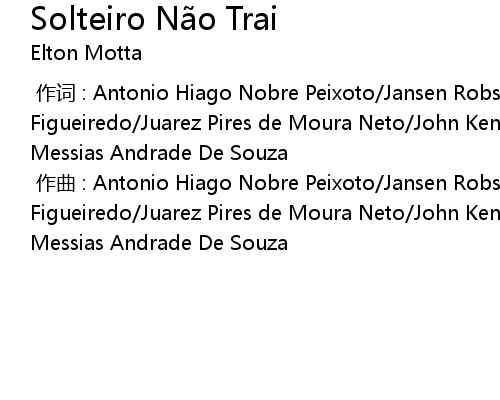 | [00:00.000] | 作曲 : Antonio Hiago Nobre Peixoto/Jansen Robson Martins Figueiredo/Juarez Pires de Moura Neto/John Kennedy Martins Figueiredo/Manoel Messias Andrade De Souza |