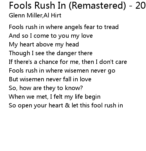| Fools rush in where wisemen never go | |