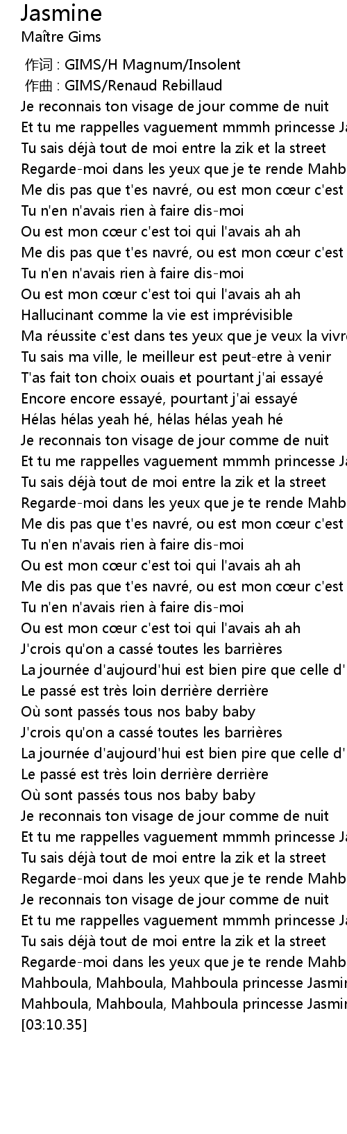| [02:59.37] | Mahboula, Mahboula, Mahboula princesse Jasmine |