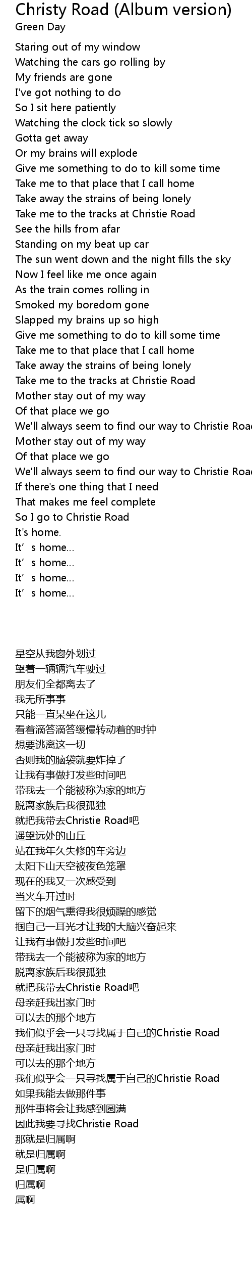 | [02:50.03] | We' ll always seem to find our way to Christie Road |