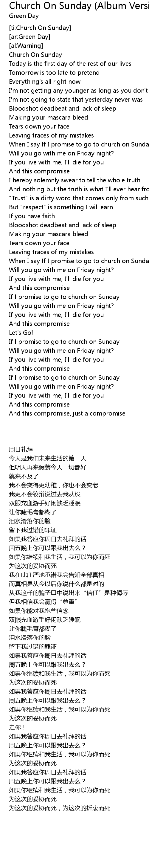| [00:45.83] | When I say If I promise to go to church on Sunday |