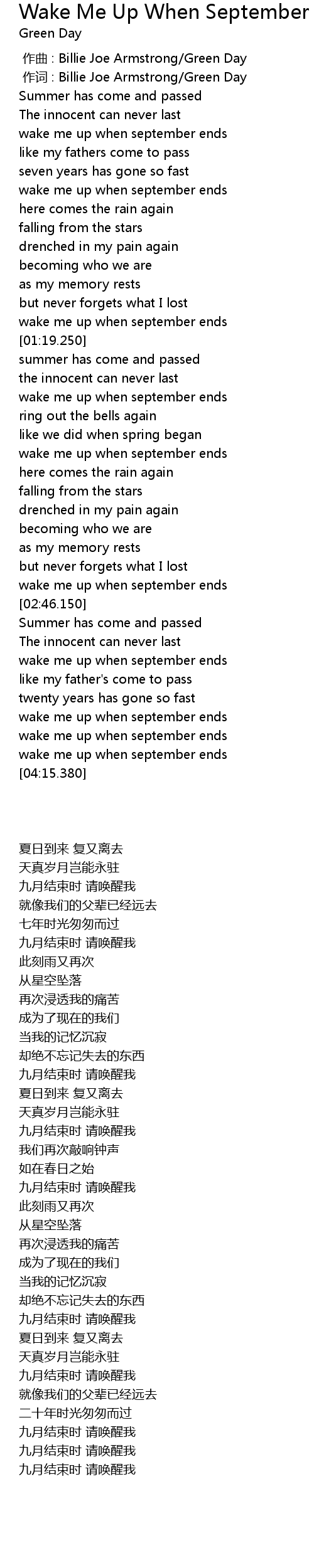 | [00:01.00] | 作词 : Billie Joe Armstrong/Green Day |