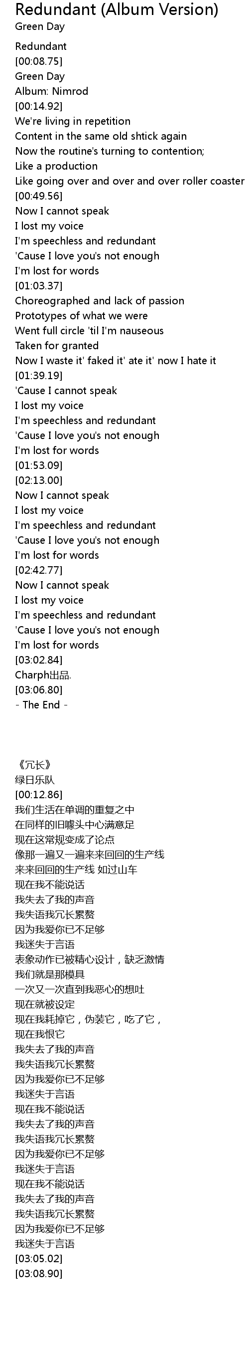 | [01:24.24] | Went full circle ' til I' m nauseous |