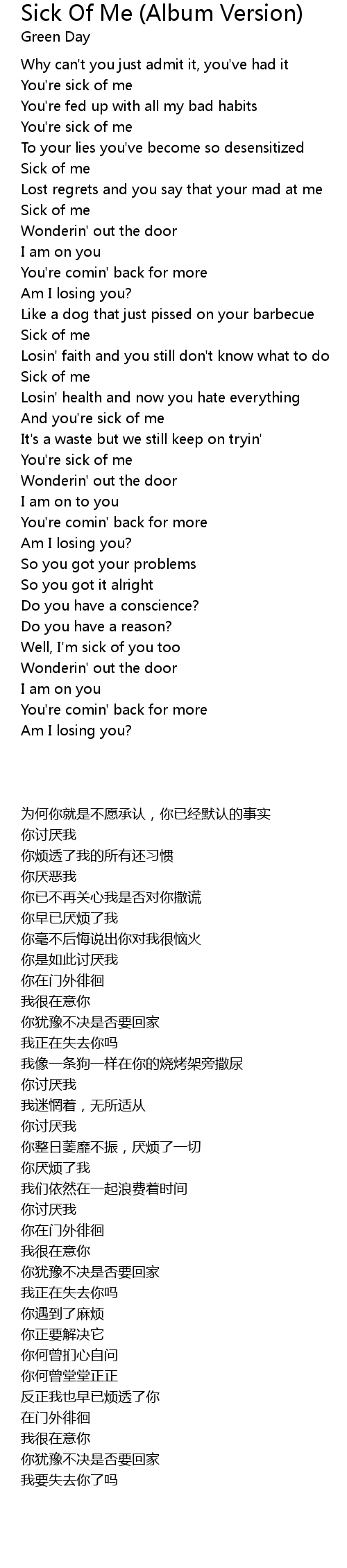 Sick of me |