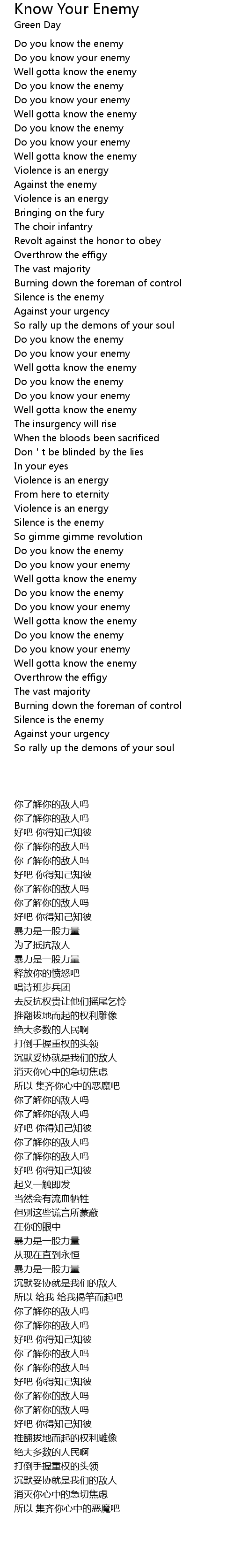 | Song | Know Your Enemy |