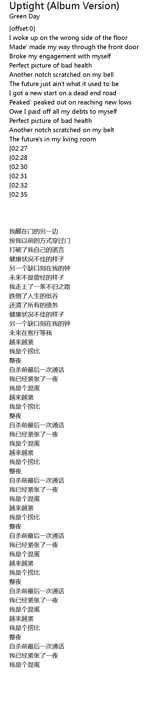 | [02:44][02:32][02:21][02:09][01:34][01:23] | I've been uptight all night |