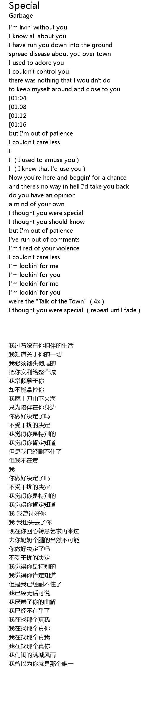 | [03:23] | I thought you were special (repeat until fade) |