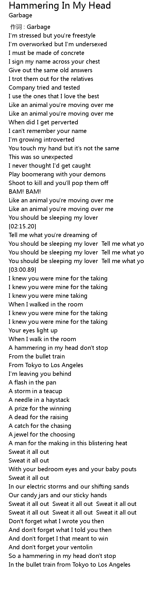 | [00:00.00] | 作词 : Garbage |