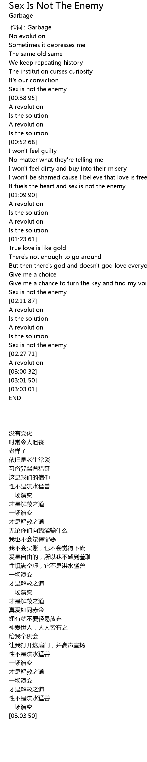 | [01:06.26] | It fuels the heart and sex is not the enemy |