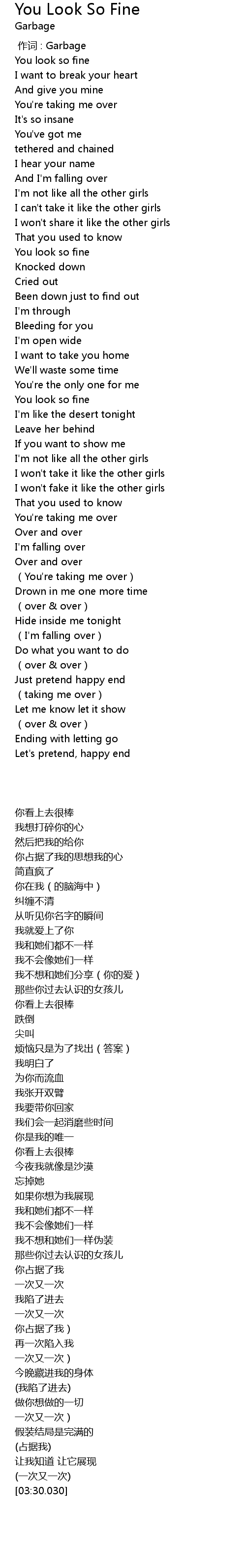 | [00:00.00] | 作词 : Garbage |