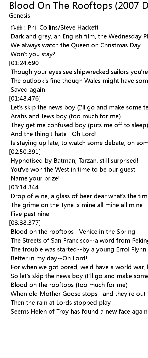 | [03:50.164] | Blood on the rooftopsVenice in the Spring |
