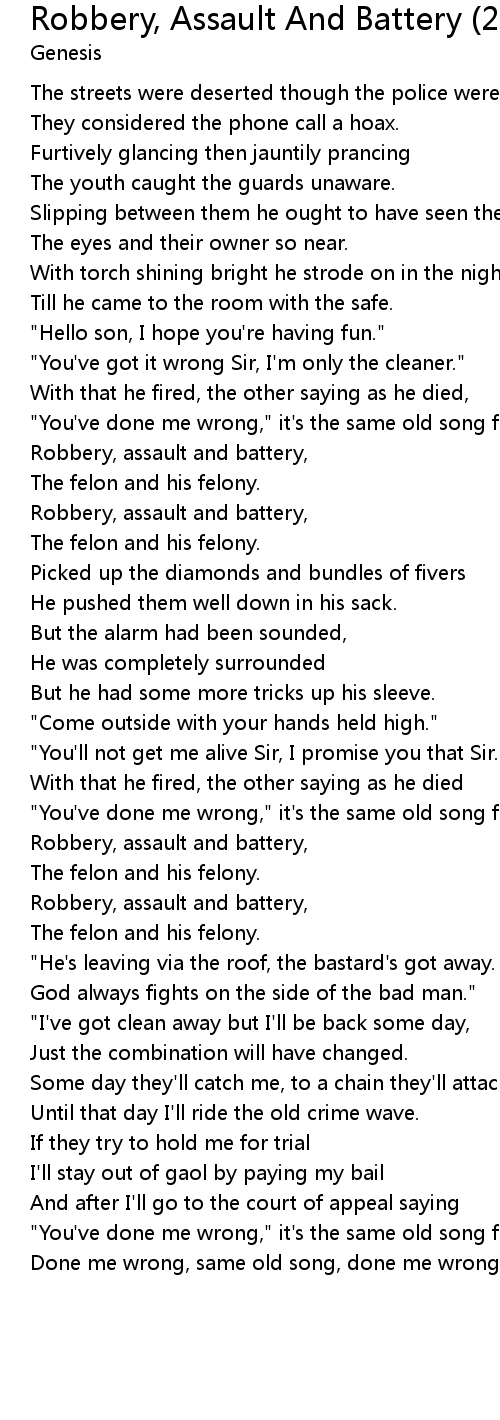 Robbery, assault and battery, |