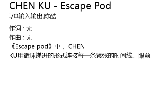 | 《Escape pod》中, CHEN KU用循环递进的形式连接每一条紧张的时间线。眼前是失联的航线与掉向的空间,远处的警报声和急促的呼吸声交织在一起。人类是否能重燃希望逃离困境,这一切仍然还是个谜。 |