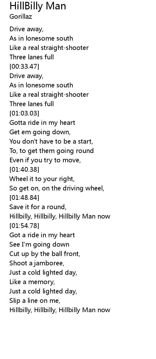 | [01:51.59] | Hillbilly, Hillbilly, Hillbilly Man now |