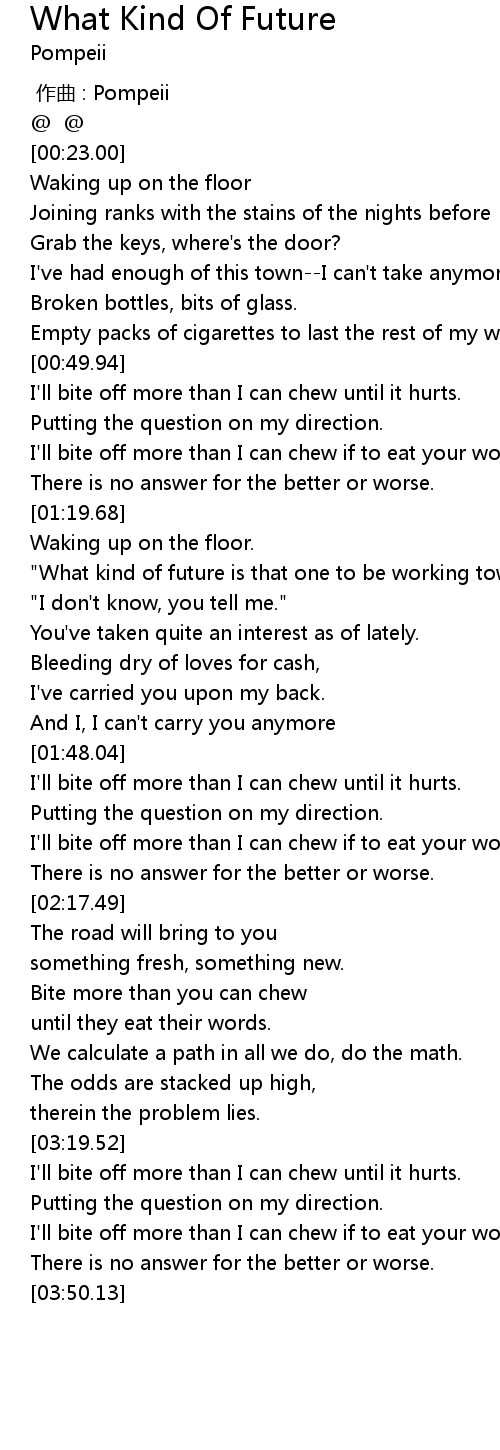 | [02:53.98] | Bite more than you can chew |