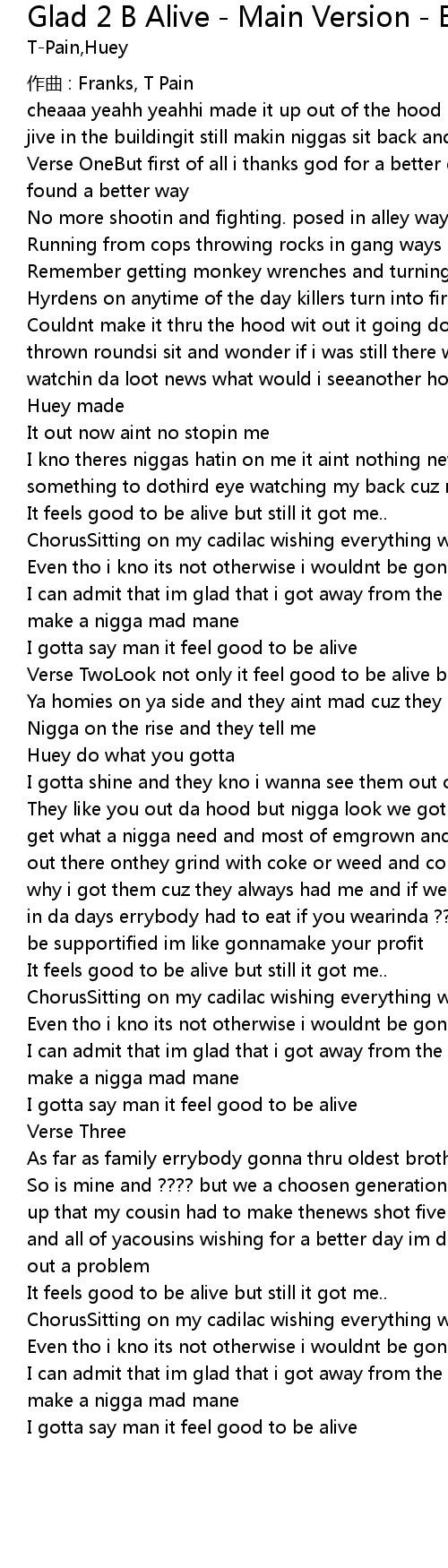 | Verse TwoLook not only it feel good to be alive but it feel good to have | |
