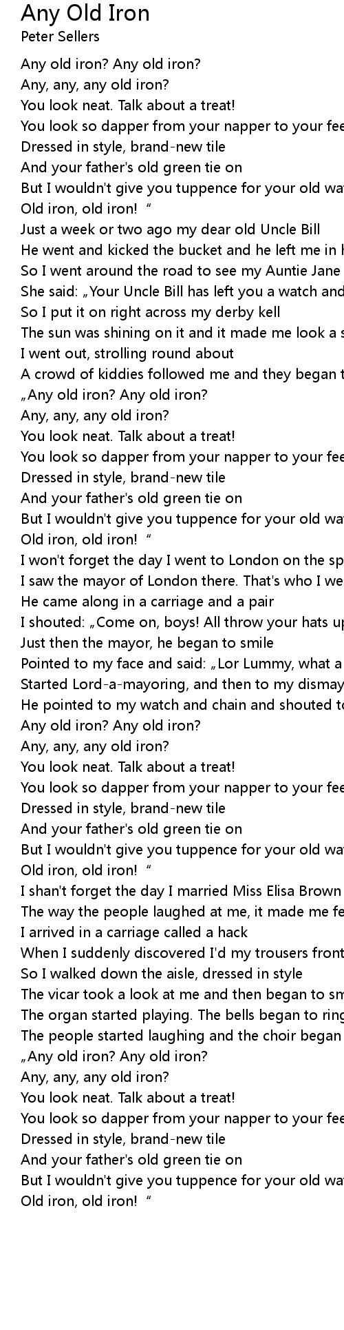 | But I wouldn't give you tuppence for your old watch and chain | |
