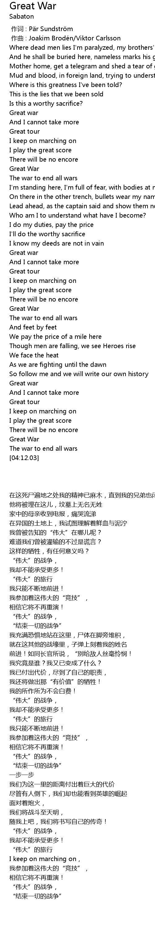 | [00:01.000] | 作曲 : Joakim Brodén/Viktor Carlsson |