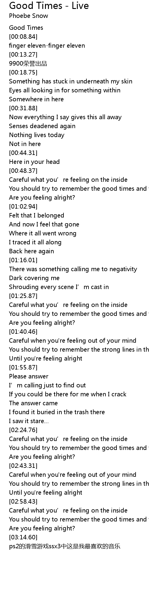 | [02:45.01] | Careful when you're feeling out of your mind |