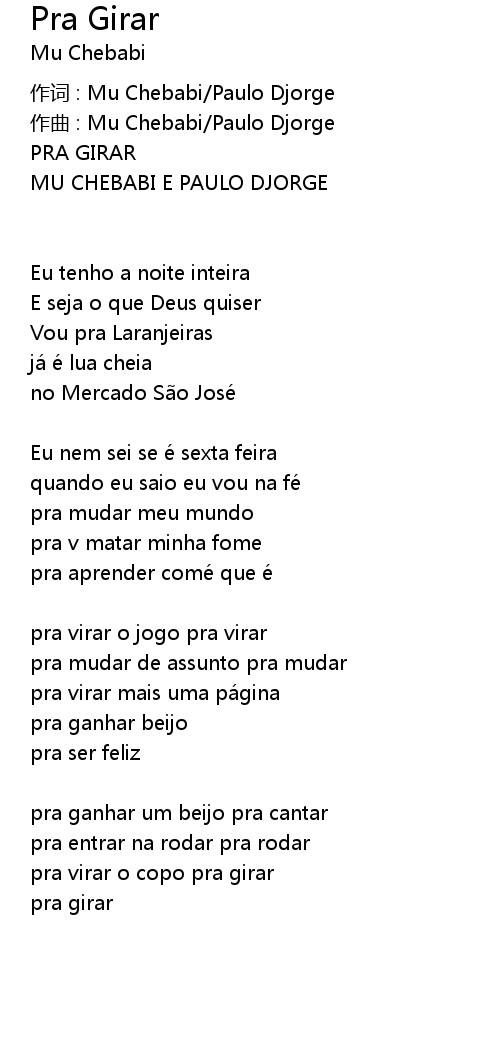 | zuò qǔ : Mu Chebabi Paulo Djorge | |
