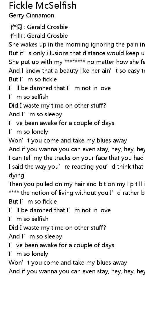 | Song | Fickle McSelfish |