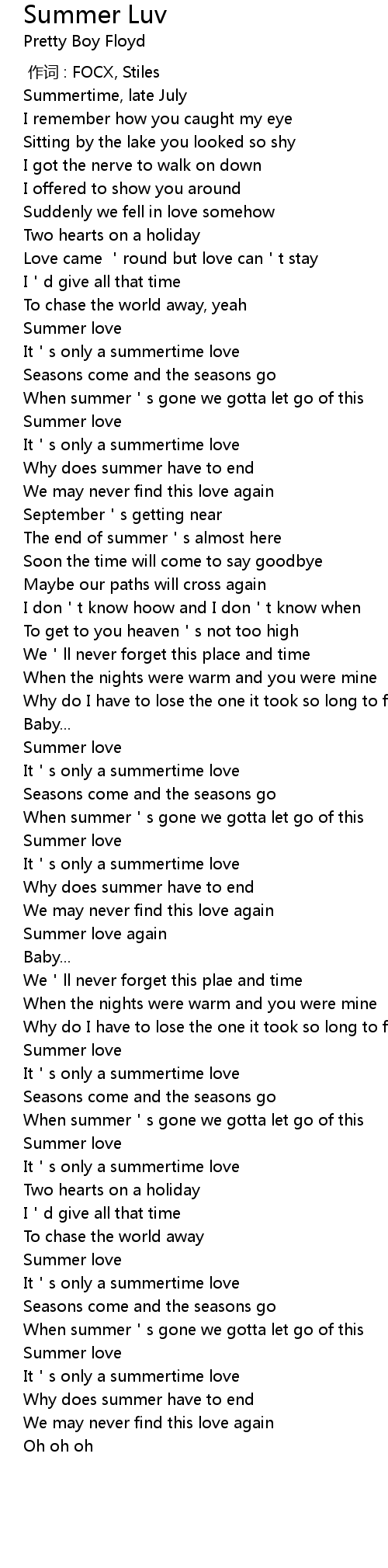 | [00:59.85] | It's only a summertime love |